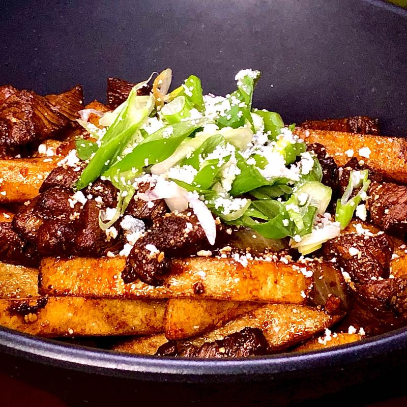 USDA choice beef, black pepper sauce, cucumber, spring mix.